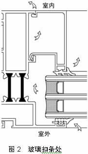 密封,一旦膠條與玻璃存在縫隙,在室內(nèi)外的溫差的作用下將產(chǎn)生熱流,從而在此處造成能量的損失,最明顯的現(xiàn)象就是在保溫性能檢測過程中玻璃扣條位置易產(chǎn)生