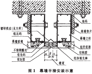 圍護結構的高級裝飾。如果既保持幕墻外表同一,又保證建筑物自由伸縮變形,筆者就玻璃幕墻在伸縮縫處的兩種主要交接方式,(即平接和垂直交接)進行探討,并介紹一些在實際工作中使用并證實可行有效的處理方法。