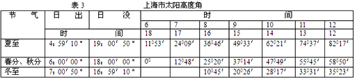 擋不一樣,上海市(東經121度26分、北緯31度10分、海拔4.5米)太陽高度角見表3。