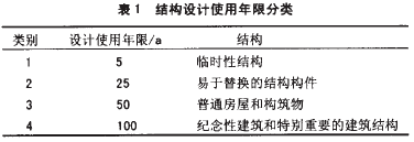 GB 50068-2001對(duì)建筑結(jié)構(gòu)的設(shè)計(jì)使用年限規(guī)定分為4類見表L)