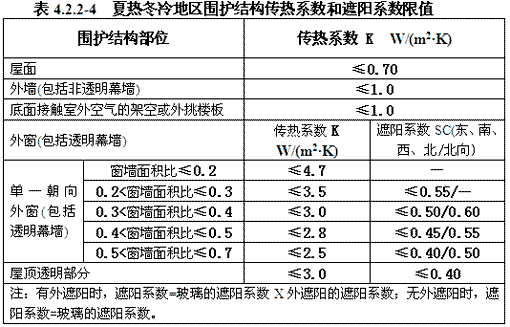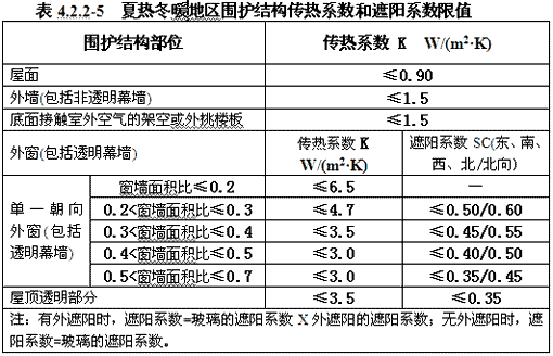 5.2 建筑外窗面積不宜過大。嚴寒和寒冷地區窗墻面積比不應大于0.40;夏熱冬冷和夏熱冬暖地區窗墻面積比不應大于0.45。窗的傳熱系數K和玻璃的