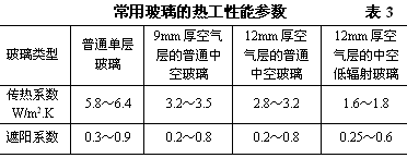 輻射玻璃。一般來說,玻璃的熱工性能參數(shù)如表3,通過該表,能大概了解玻璃幕墻的熱工性能。