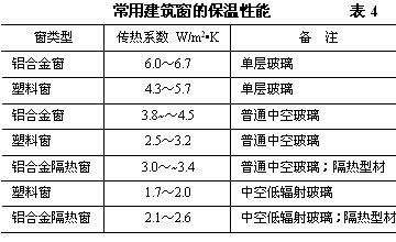 2.K。目前,市場(chǎng)上常用的建筑窗按玻璃類型可分為單層玻璃窗和中空玻璃窗。常用建筑窗的保溫性能見表4。