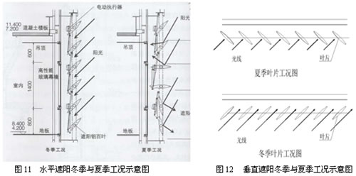 外遮陽(yáng)系統(tǒng)的冬季與夏季工況示意如圖11、圖12。