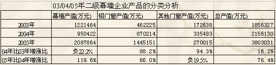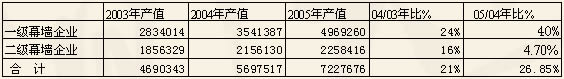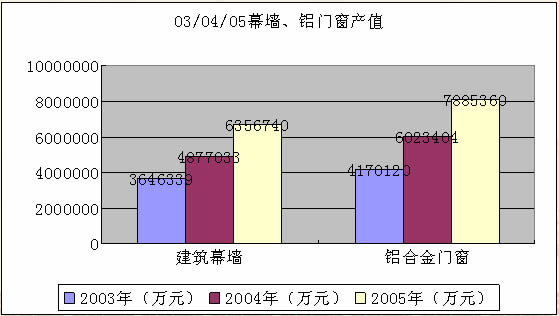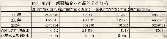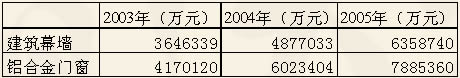 03/04/05年建筑幕墻、鋁門窗產值增長對比表