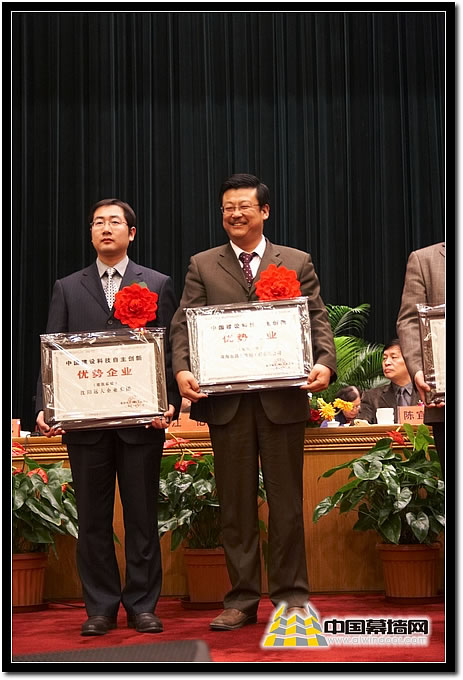 圖十四 建筑幕墻類獲獎企業(yè) 沈陽遠大、珠海晶藝 企業(yè)代表上臺領(lǐng)獎