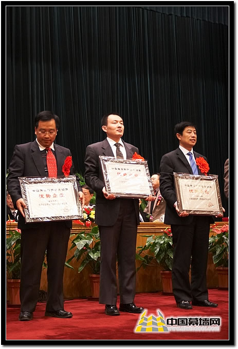 圖十六 建筑幕墻類 獲獎企業(yè)如深圳金粵、上海美特、上海高新企業(yè)代表上臺領(lǐng)獎
