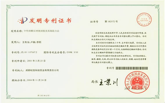 2004年硅寶997中性硅酮石材密封膠獲國家發明專利: