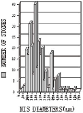 圖3. 硫化鎳在玻璃中的位置分布統計