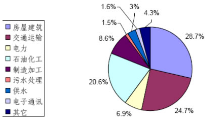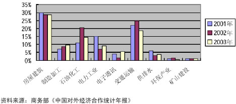 圖5 2003年我國對外工程承包行業分布情況