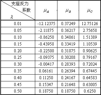 表1 雙跨梁支座反力系數表