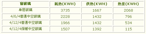 除了上述兩個(gè)方面以外,玻璃的節(jié)能是最不能忽視的一個(gè)方面。作為塑料門(mén)窗來(lái)說(shuō),窗框僅占窗面積的20%左右,窗戶越大所占比例越小,因此玻璃才是保溫的關(guān)鍵。70年代初期第一次石油危機(jī)以來(lái),西方一些政府就開(kāi)始考慮如何立法推進(jìn)玻璃窗的更新?lián)Q代,能源危機(jī)的美國(guó)曾試圖通過(guò)減小窗戶面積來(lái)降低新建筑的耗能,窗戶面積減小1/4,能耗可惜才降低10%,而大面積玻璃即采光、減重又明亮潔凈的優(yōu)點(diǎn)卻無(wú)從發(fā)揮。中空玻璃則不然,它既隔熱,又保溫可節(jié)約大量能源。以德國(guó)政府為例,70年代后期立法,沒(méi)有中空玻璃的新樓房不批準(zhǔn)建設(shè)。近來(lái)根據(jù)技術(shù)發(fā)展,頒布了新的法令。1995年1月1日開(kāi)始實(shí)施的節(jié)能新條例對(duì)現(xiàn)有樓房和新樓房外窗的導(dǎo)熱率做出了規(guī)定。其目的就是強(qiáng)制使用鍍膜中空玻璃,不僅如此歐洲聯(lián)盟也依據(jù)德國(guó)的節(jié)能新條例,從1997年起在全歐洲實(shí)施新的節(jié)能條例。下面是采用法國(guó)圣戈班玻璃公司生產(chǎn)的鍍膜玻璃,小屋居住面積12.6 m2,南窗面積5.6 m2,東窗面積2.1 m2,西窗面積2.1 m2,北窗面積2.8 m2,遮陽(yáng)系數(shù)0.9,在采暖期間,其熱平衡參數(shù)引人注目(見(jiàn)下表)
