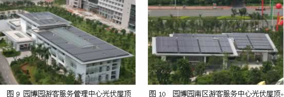 由深圳市政府投資承建的1兆瓦太陽能光伏電站于2004年8月在深圳國際園林花卉博覽園內(nèi)建成發(fā)電。電站安裝于園內(nèi)綜合展館、花卉展館、管理中心、南區(qū)游客服務(wù)中心和北區(qū)東山坡,采用與市電直接并網(wǎng)的運行方式,是目前亞洲最大的并網(wǎng)太陽能光伏電站之一。該電站總?cè)萘?000.322kWp,年發(fā)電能力約為100萬kWh。工程采用了超過4000個單晶硅及多晶硅光伏組件(160瓦和170瓦組件)。與建筑屋頂結(jié)合部分如圖8~10。