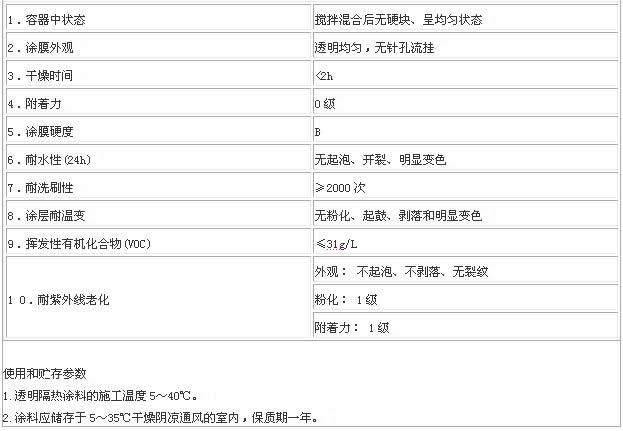 五、納米透明隔熱涂料產品參數