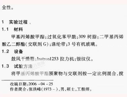 摘要:選 用甲基丙烯酸甲醋預聚物作為主體樹脂,通過交聯(lián)劑種類及含量對膠粘劑拉伸剪切強度和應力一溶劑銀紋性能影響的研究,研制出一種耐熱性能滿足使用要求的丙烯