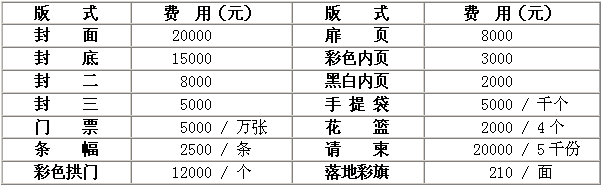 銅板紙四色精印,圖文并茂,還收錄展會(huì) 詳情、展商產(chǎn)品等供需資料。會(huì)刊將送發(fā)給政府領(lǐng)導(dǎo)及相關(guān)部門,凡參展單位均可免費(fèi)刊登200字以內(nèi)的文字簡介。因篇幅有限,如還需要其他類型廣告請(qǐng)致電組委會(huì)咨詢。凡需在會(huì)刊刊登廣告的單位請(qǐng)?jiān)?008年6月20日前將菲林片(底片)寄至大會(huì)組委會(huì)。