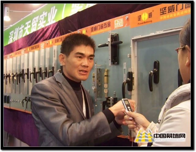 深圳市天貿實業(堅威門窗五金)有限公司區域經理農健光接受中國幕墻網記者采訪