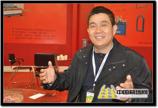 在2010第八屆中國國際門窗幕墻博覽會現場中國幕墻網記者有幸采訪到中山市信元鋁門窗機械制造有限公司楊后玉總經理。