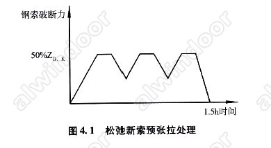 工藝1:在索的最大破斷力40%~~60%間反復張拉5次,然后持續(xù)10分鐘;