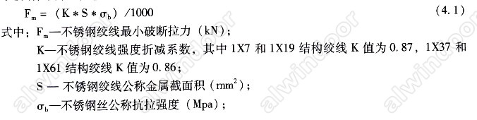 不銹鋼絞線強度設計值=不銹鋼絞線最小破斷拉力(Fm) ×