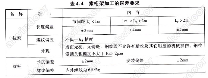 (5)索桁架加工的誤差應符合(表4.4)要求: