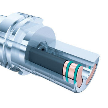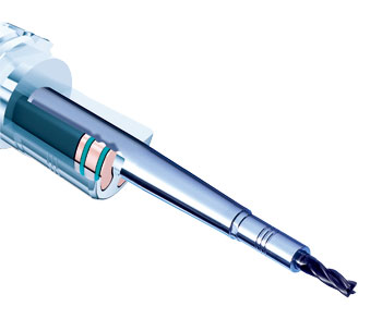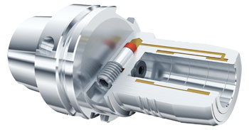圖3 采用Tribos應(yīng)力鎖緊夾緊技術(shù)時(shí),刀柄通過(guò)夾持孔的彈性變形夾緊刀具,因其不同的結(jié)構(gòu)特征,可夾持從0.3~32mm的刀具