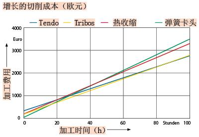 在初期投入中,刀柄的購(gòu)置成本成為一項(xiàng)主要考慮因素,但是與加工時(shí)間有關(guān)的費(fèi)用節(jié)省很快就會(huì)引起人們的注意。另人驚奇的是刀柄的購(gòu)置費(fèi)用對(duì)整個(gè)切削費(fèi)用影響不大,正如把靜壓膨脹式刀柄與熱縮式刀柄所作的對(duì)比表明:盡管熱縮刀柄的購(gòu)置費(fèi)用較低,但是在使用TENDO液壓刀柄19h后,使用TENDO液壓刀柄的加工費(fèi)用就已經(jīng)明顯變得更低。在最低價(jià)和最昂貴的系統(tǒng)之間分別進(jìn)行100h的有效使用后,結(jié)果是兩者之間的加工費(fèi)用差異達(dá)到771歐元。【完】