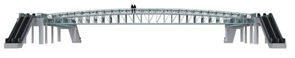 此外,在上海還有一個具有特殊意義的標志性工程——矗立在上海灘最繁華的徐家匯地區的徐家匯全鋁高架橋。它是國內首座完全自主設計、自行生產、自行建造的鋁合金結構橋梁,也是目前國內僅有的三座鋁合金橋梁之一。于2007年9月在徐家匯漕溪北路投入運行(見圖4)。該橋外形類似外灘“白渡橋”,連接徐家匯第六百貨以及太平洋百貨,主材為6061-T6鋁合金,全部由鳳鋁獨家提供,單跨23m,寬度6m,主橋高2.6m,橋凈高4.6m。由于徐家匯地區地下有地鐵通過,為了確保地鐵運行的安全,鋁合金天橋自重僅15噸,最大載重量可以達到50噸,遠低于“地鐵上建設天橋不得超過70噸”的標準,有效地緩解了該路段人行通道擁擠的狀況,并為徐家匯的各大商場帶來了更多商機。