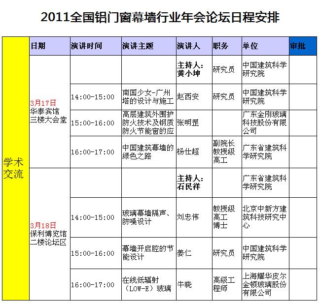 2011全國鋁門窗幕墻行業年會論壇日程安排