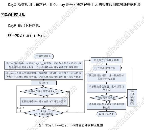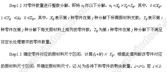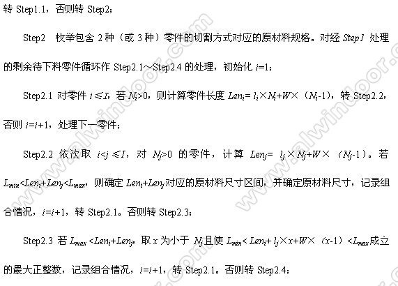 從非定長優化下料問題的描述及所建立的數學模型可以看出,非定長優化下料問題從本質上可以看作無原材料最大數量限制且原材料規格種類很多的優化下料問題。由于要滿足下料方案的可制造性要求,且原材料規格種類很多,不能按一般的多原材優化下料算法處理,本文采用基于下料零件數量整數分解的枚舉算法解決非定長優化下料問題。