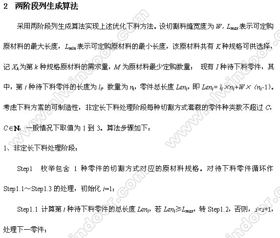 在非定長優化下料處理階段,由于考慮下料方案可制造性的要求,對每種切割方式中套裁的零件種類數有限制,套裁的組合方式會大大降低,降低了求解問題的時間復雜度,采用對零件數量整數分解的枚舉算法不會導致運算時間過長。在定長優化下料處理階段,雖然定長優化下料的背包問題是具有最高計算復雜性的NP完全問題,但在兩階段列生成算法中,經過非定長下料階段已經處理完大部分的零件,降低了下料問題的規模,使定長優化下料階段背包問題的求解復雜度降低。