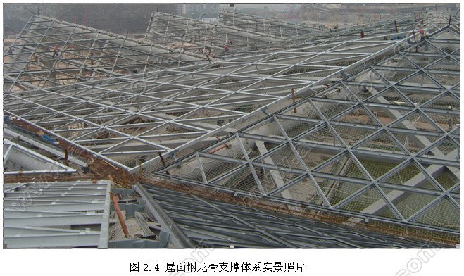 立柱在長度方向可自由伸縮,目前屋面幕墻鋼結構支撐體系已完工,現場效果良好(如圖2.5~2.7)。