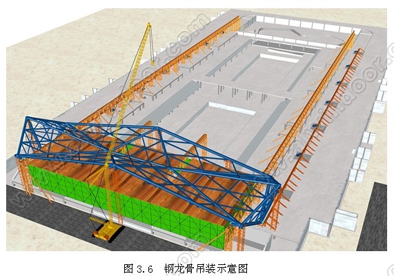 鋼構進行滑移→三角鋼架整體提升就位(如圖3.6)。