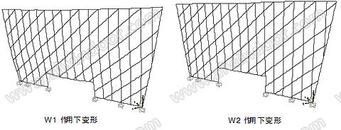 東側立面結構在風荷載下變形圖:(最大水平位移約61/-51mm)