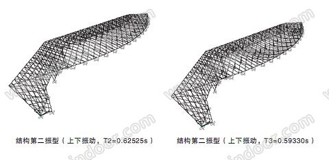 屋面自重輕,在風(fēng)吸力較大的情況下可能導(dǎo)致下部預(yù)應(yīng)力索拉力喪失,結(jié)構(gòu)是失穩(wěn),設(shè)計(jì)時(shí)尤其要注意,必要時(shí)須加大結(jié)構(gòu)自重或增加反向穩(wěn)定索。