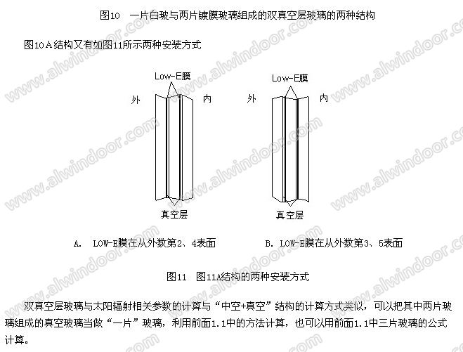 由以上論述可以看出,與普通真空玻璃相比,組合真空玻璃的遮陽系數都有所下降,降低了太陽輻射向室內傳熱,而且傳熱系數降低,又大大減少了溫差引起的傳熱,增強了隔熱保溫效果;通過與鋼化玻璃組合成“中空+真空”結構或制成夾膠玻璃,解決了普通真空玻璃的安全問題,使安全性提高。