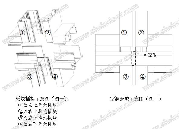 單元幕墻分類:單元幕墻作法有兩大類既插接方式(或稱楔合式)及對接方式(或稱獨立式);比較通行的是插接方式,又細分為橫滑型和橫鎖型,通過桿件的對插完成接縫(圖一)對接方式是通過膠條的對接完成接縫。由于單元板塊安裝時在四個相鄰板塊間會形成一個內外慣穿的空洞(圖二),對這個空洞的不同處理方式決定了單元幕墻的類型,以下分述之。