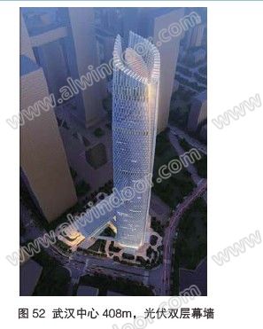 英國曼徹斯特合作保險大廈的光伏幕墻采用了1700塊光伏單元板(詞條“單元板”由行業大百科提供)塊(圖56);而目前采用光伏幕墻最高的建筑是阿聯酋阿布扎比CMA塔樓,76層,385m,在塔樓屋面和朝陽墻面上安裝了光伏組件,年發電量達30萬kWh(圖57)。