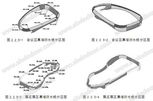 在直立鎖邊鋁鎂錳金屬面層防水板設(shè)計要求上,根據(jù)三維排板模型要求和使用安裝位置,分別采用標準直板、標準彎弧板、扇形直板、扇形彎弧板。扇形板端頭板寬不小于245mm且不大于570mm,標準板端頭板寬為400mm。所有板厚均為0.9mm,板肋高度為65mm,室外表面涂層為氟碳噴涂。面板室外表面必須粘貼保護膜,以防止涂層在運輸、加工制作、安裝過程中被損傷。單張面板應根據(jù)排板模型要求長度采用專用壓型機器一次連續(xù)加工成型,橫向搭接(詞條“搭接”由行業(yè)大百科提供)采用暗扣式機械咬合固定在鋁合金T碼固定座上 ;每張面板的鎖邊應采用有爬坡功能的鎖邊設(shè)備一次完成,鎖邊完成。,(如圖2.2-1,2.2-4)