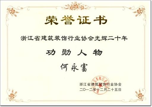 之江公司董事長兼總經理何永富先生“功勛人物”獎