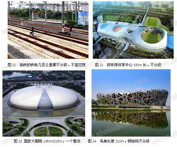 常規幕墻的骨架;老式低速鐵路的鐵軌(長度13.2m);用許多溫度縫分 開的廠房;帶活動接頭的管道;