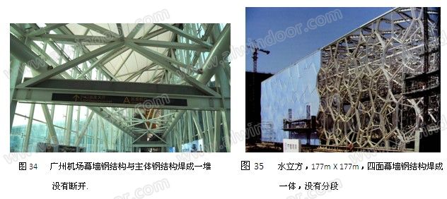 幕墻鋼結(jié)構(gòu)與主體鋼結(jié)構(gòu)或主體混凝土結(jié)構(gòu)相連接,兩者溫度變形相同或相近,溫度應(yīng)力很小;鋼材強(qiáng)度很高,完全可以承受溫度應(yīng)力。所以斷與不斷都不成問題,怎么做都可以,斷與不斷,由設(shè)計(jì)者自行決定: