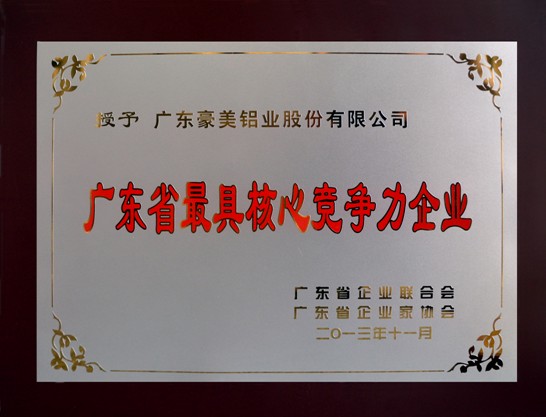 【中國幕墻網(wǎng)】近日,由廣東省企業(yè)聯(lián)合會、廣東省企業(yè)家協(xié)會舉辦的2013年度“廣東省最具核心競爭力企業(yè)”評選活動揭曉,豪美鋁業(yè)榮獲2013年度“廣東省最具核心競爭力企業(yè)”稱號。核心競爭力是企業(yè)保持競爭優(yōu)勢、獲得持續(xù)發(fā)展的決定因素。此項榮譽的獲得,是對豪美鋁業(yè)近年來不斷提升企業(yè)管理水平、提高自主創(chuàng)新能力、增強企業(yè)競爭優(yōu)勢、打造核心競爭力的充分肯定,進(jìn)一步展示了豪美鋁業(yè)的良好形象。