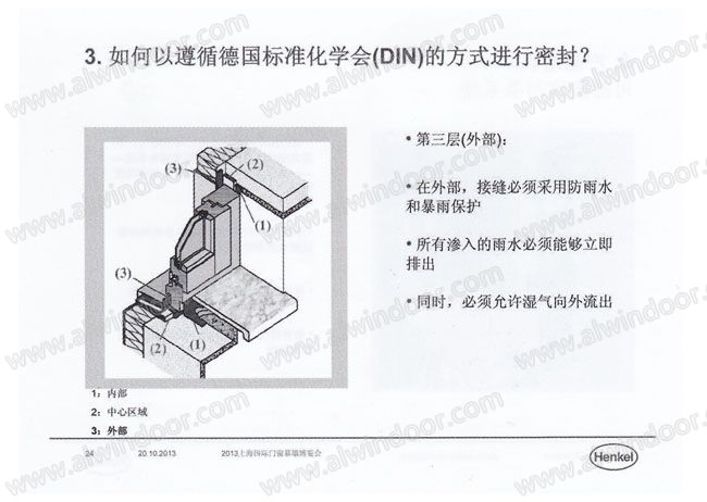 目前,鑒于最先進(jìn)的技術(shù)專注于低能量和被動(dòng)式住房,門窗周邊接縫的密封特別重要;建筑物外究與窗口、窗口部件和門之間接縫冷凝所產(chǎn)生的結(jié)構(gòu)性損壞在過去數(shù)年內(nèi)通著增加;建筑標(biāo)準(zhǔn)作業(yè)---《RAL門窗質(zhì)量協(xié)會(huì)》包含了該領(lǐng)域技術(shù)現(xiàn)狀的豐富信息, 其中的“三層”原理是一個(gè)重要的理念。