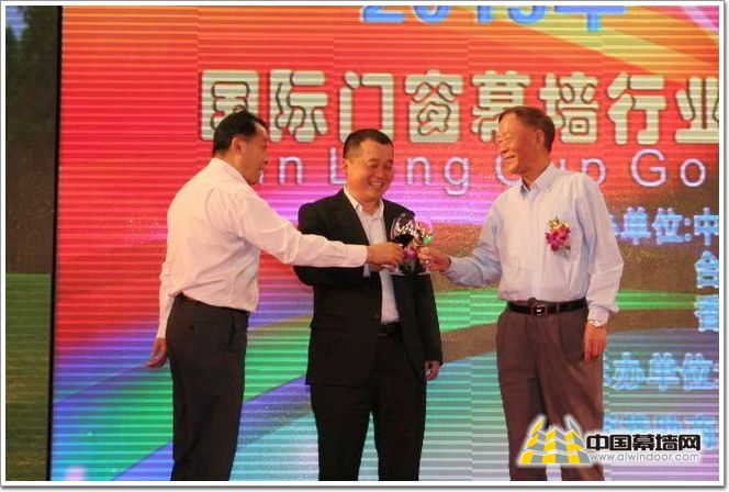 中國建筑金屬結構協會鋁門窗幕墻委員會副秘書長主任黃圻(左)、廣東堅朗五金制品股份有限公司總裁白寶鯤(中)、中國建筑金屬結構協會顧問杜宗翰(右)共同舉杯慶祝高爾夫球賽的圓滿成功 圖9