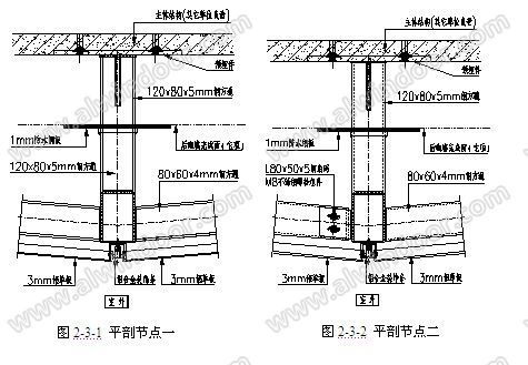 2.3.1鋁板幕墻橫龍骨與豎龍骨的連接節點