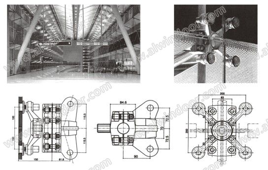 框交點采用十字型,用螺絲固定。在這個部位設有內藏發光二級管照明,夜間從遠處望大廈,大廈星光閃閃。