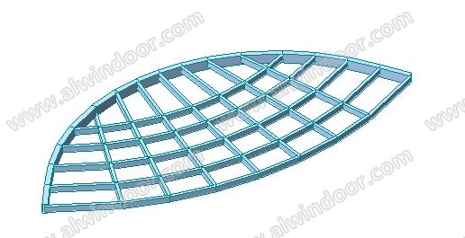 5 計算參數 (1)恒荷載(主要為玻璃和駁接爪件):0.65KN/m2 (2)活荷載:0.5 KN/m2 (3)雪荷載:0.4 KN/m2 (4)風荷載:,基本風壓0.55 KN/m2,分兩種情況考慮 ① 第一種情況:按照荷載規范GB50009-2012中8.3.3條中的第二條中的要求,體形系數取-2,此為負風壓; 按照外圍護結構計算公式得WK= βgzμslμzw0=-1.5 KN/m2 ② 第一種情況:為安全考慮,體型系數取0.5,此為正風壓; 按照外圍護結構計算公式得WK= βgzμslμzw0=0.4 KN/m2 (5)地震參數:8度抗震(0.2g),設計地震分組為第一組,場地類別為Ⅱ類,場地特征周期Tg=0.40 (6)溫度:溫差按照±30°考慮 6 結構計算 6.1計算模型
