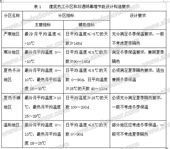 以上分析看出,根據不同地區的氣候條件,非透明幕墻的斷熱要求并不相同,見表1。單一或組合的功能要求形成不同的幕墻構造,形式主要表現在,幕墻面層的開放與否、空氣層間距和水平方向的通氣尺寸、防水透氣膜和防水隔汽膜的位置、保溫層的厚度、防火的關系等等,而參數指標主要是傳熱系數、結露判定、墻體換氣量等等。