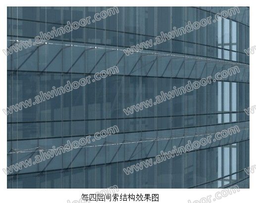 為了能滿足結構的安全性能又可以達到最佳的視覺效果,本工程選擇了不銹鋼索作為篆體字的承載體,建筑以4200mm為標準層高的部分每四層按照玻璃幕墻豎向分格布置不銹鋼索,建筑以6000mm和5000mm為標準層高的部分每三層按照玻璃幕墻豎向分格布置不銹鋼索,其間每層布置不銹鋼支撐桿件,每個玻璃幕墻分格的支撐桿件之間加以橫向的不銹鋼拉桿即起到水平穩定的功能,又可以起到固定字的作用。
